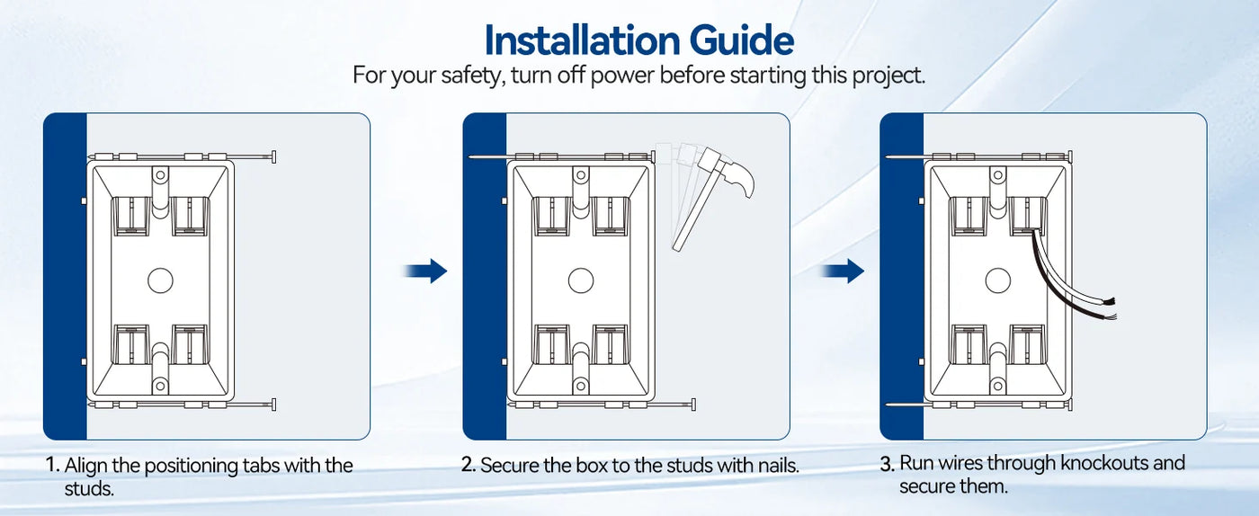 Enjoy effortless installation with built-in wire clamps and a user-friendly design that saves time on every job. Perfectly sized for fast, secure placement in new construction.