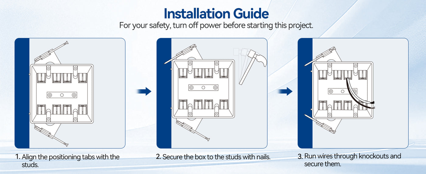 Enjoy effortless installation with built-in wire clamps and a user-friendly design that saves time on every job. Perfectly sized for fast, secure placement in new construction.