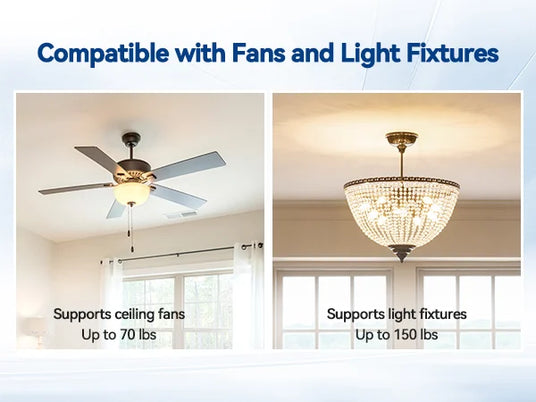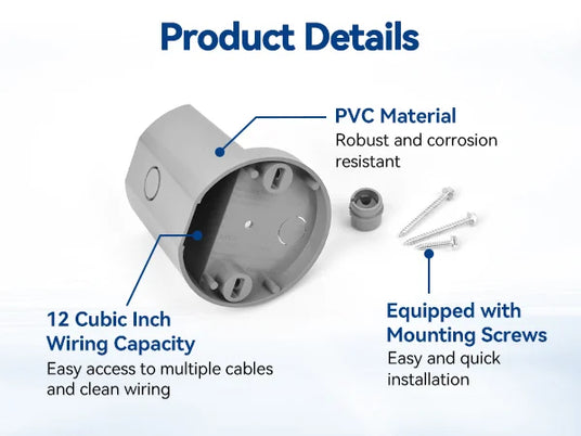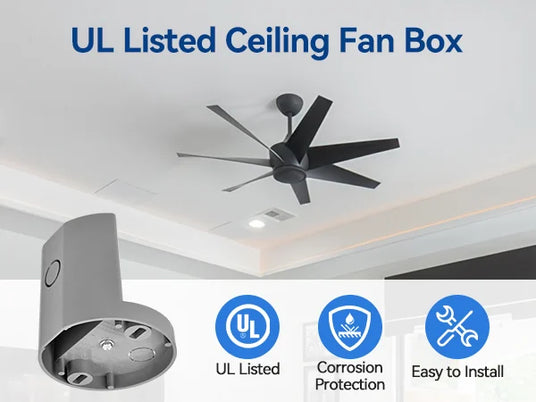 Built for durability and effortless installation, the 12 cu.in Togalonn™ Round Ceiling Fan/Light Side Mount Box with Cover is crafted from heavy-duty PVC to withstand corrosion, wear, and demanding environments. Its 4” depth offers generous space for wiring, while integrated nail brackets ensure quick, rock-solid mounting on studs, perfect for new construction or renovations. Pre-punched knockouts and compatibility with standard clamps or conduits simplify setup, saving time for professionals and DIYers alike. UL-listed and code-compliant, it guarantees safety and reliability for switches, outlets, or devices in homes or light commercial spaces.
